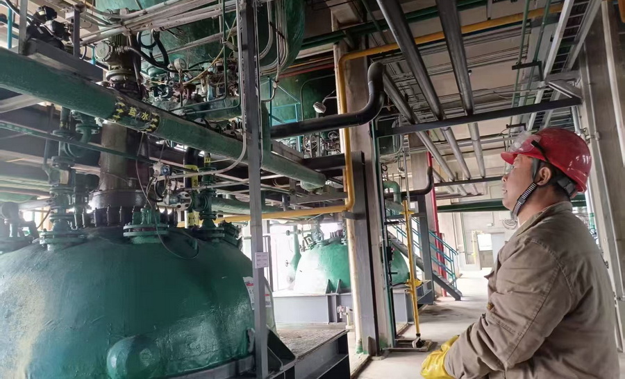 天剛蒙蒙亮,晨光便灑進(jìn)了海利貴溪公司廠(chǎng)區(qū)。丁硫車(chē)間那一排高大的反應(yīng)釜,在熹微的曦色里泛著冷峻的金屬光澤。饒斌像往常一樣,早早來(lái)到廠(chǎng)里。他熟練地戴上安全帽,手持對(duì)講機(jī),開(kāi)啟了每日雷打不動(dòng)的車(chē)間巡檢工作。他沿著管線(xiàn),時(shí)而停下腳步,側(cè)耳細(xì)聽(tīng)設(shè)備運(yùn)轉(zhuǎn)的聲響,時(shí)而湊近儀表盤(pán),仔細(xì)查看各項(xiàng)數(shù)據(jù)。不知不覺(jué),一個(gè)上午就悄然過(guò)去了,而這不過(guò)是饒斌日常工作的普通一幕。